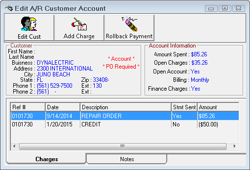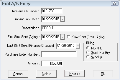 Another way of posting a credit is to go into Edit Accounts in the Accounts Receivable module, select the customer and click on the Add Charge button and add a negative charge with description such as Credit.