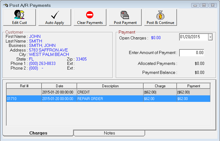 Tip: Always watch the Payment Balance amount. You only want to click on the Post Payment button when that amount is 0.00 unless the customer did in fact overpay you and you want to leave the overpayment amount as a credit on their account.