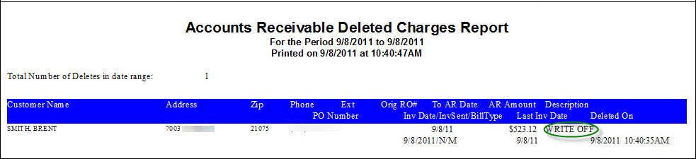 You are then able to print a Deleted Charges report for that customer and the description prints as Write Off or Bad Debt.
