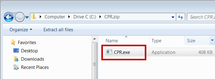 - Double-click the CPR.exe. (You can run the CPR.exe from inside the zip file. )
