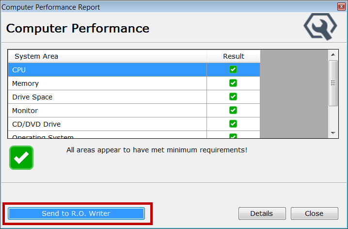 R.O. Writer developed the CPR tool so that you can scan any computer to see if the computer meets the hardware and software requirements to run R.O. Writer.