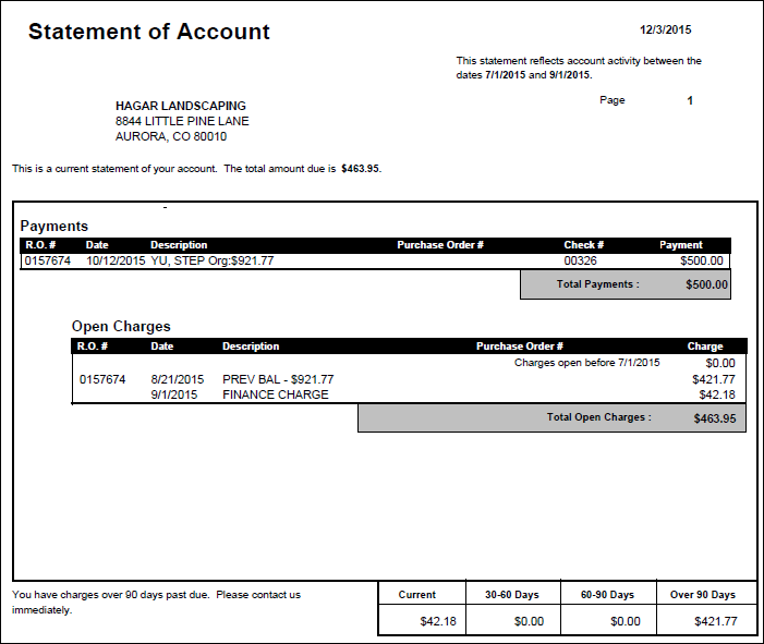 Printing statements begins the aging of accounts and adds finance charges to the account (see Aging and Finance Charges).