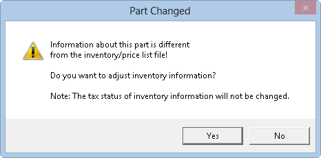 There is an option in the Configuration module that allows you to change the master file of a part from estimates and repair orders. If the Configuration menu > Repair Order > R.O. Options > Miscellaneous > Allow On-the-Fly Changes to Parts and Labor Files is checked, a prompt appears when a part has been edited on an estimate or repair order.