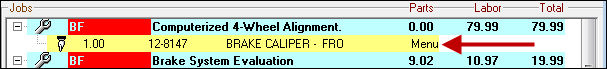 Select this item if you want to include this part as a Menu Jobs, which means the total price to the customer is in the labor operation. As a result, the price for the part changes to "0.00" and replaced by "Menu" in the Parts column.