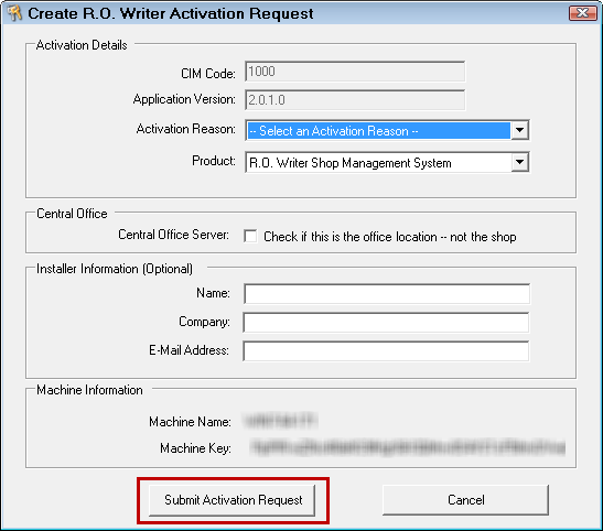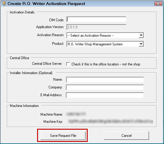 If your licensing details (e.g., shop address, additional features, new functionality, etc.) change, contact the R.O. Writer Sales department. They will update your CIM code in the R.O. Writer licensing server.