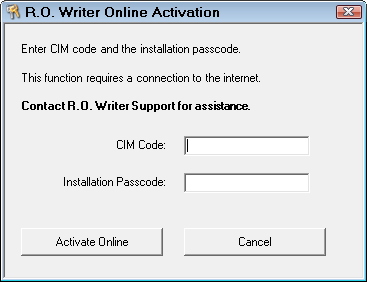 - Contact the R.O. Writer Support to begin the process of updating your CIM code in the R.O. Writer License Server.