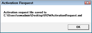 - Click the Save Request File button. The systems generates a file named "ROWActivationRequest.xml".