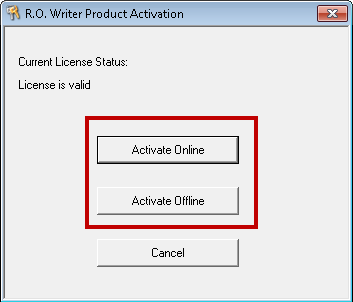 You must have an active connection to the internet to activate online because this program communicates directly to R.O. Writer's Licensing Server.