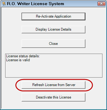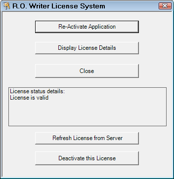 To download and activate the license file, open the R.O. Writer License System and click the Activate Application or Re-Activate Application button.