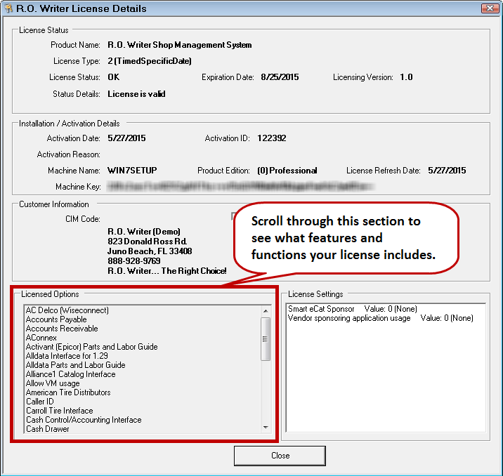 When you purchase R.O. Writer, you obtain a license code that is unique to your shop. The license code includes the modules, features, and functionality you purchased.