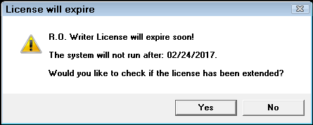 - If the CIM code remains expired, the license file is not updated and R.O. Writer will continue to prompt you with the expiration date when you launch R.O. Writer.