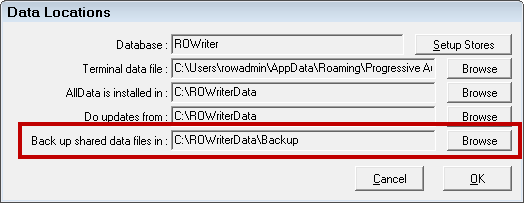 The compressed data file is saved to the default location, which is set in the Configuration module in File menu > Data Locations> Back Up Shared Data Files In field.