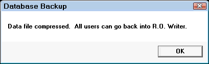 - Make sure all users in your shop are not using R.O. Writer and click OK.