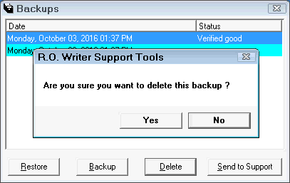 - Click Yes and the data backup is deleted from the list.