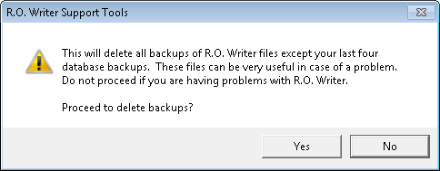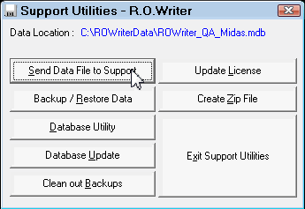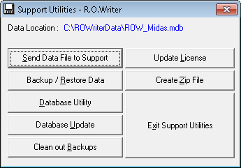 The Database Utilities were developed to perform some functions that may not be available in other modules of R.O. Writer, generally associated with resolving problems that might have occurred. These utilities should only be used when directed to do so by an R.O. Writer support person.