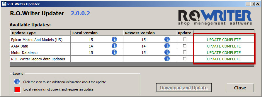 The Updater is a utility that automatically downloads and performs relevant updates on R.O. Writer databases: