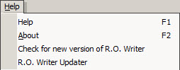 Click the Help menu on the main window and select R.O. Writer Updater.
