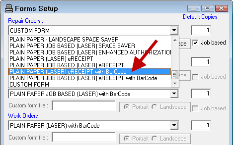 To do this, you must select one of the Form Types that create bar codes on printed estimates, work orders and repair orders.