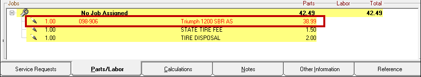 If there is a part associated with the UPC code in Inventory, it appears on the ticket on its own line.