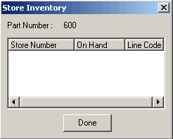 Click the Stores button to see if the part is on hand at other stores in your network. If the part is available at other locations, the store number and the quantity available appears in the list.