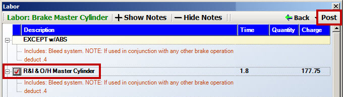 - Select the labor and click the post button and select Yes or No to use that labor time.