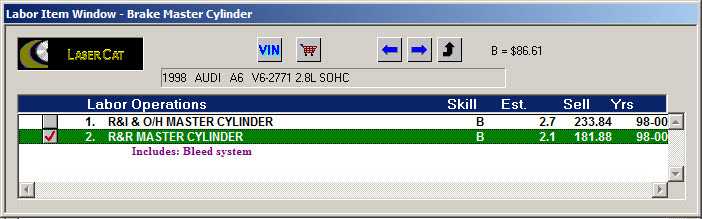- Click the Labor Lookup button. This activates the parts and labor guide.