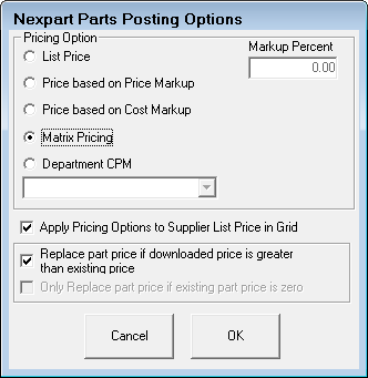 Tells R.O. Writer to use the Price Matrix set up for the Nexpart supplier. |