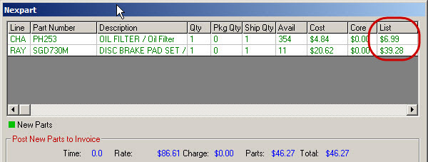 Seeing the price before posting it to the repair order can help you decide which part to order. |