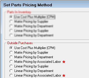 These options determine what pricing method is used when purchasing Transtar parts as outside purchases.