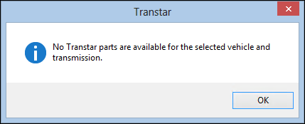 Occasionally, there are vehicles in the Transtar database whose transmission type has no parts associated with them. If one of those vehicles is in the estimate or repair order when you click access Transtar, the following prompt appears: