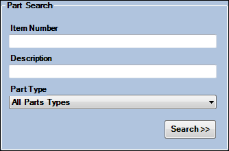 Enter an Item Number, Description, and Part Type from the dropdown list, and then click Search.