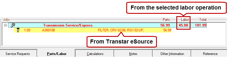 Add the parts and labor as separate lines. Use this option if the jobs listed are not included in the same labor operation.