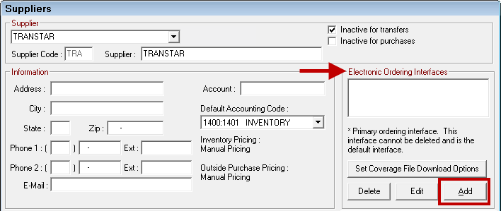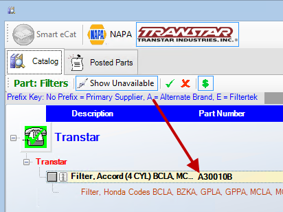 If you use Smart eCat, the Local Inventory coverage list works off of Epicor data. Transtar does not have any parts listed in the Epicor catalog; therefore, you cannot add Transtar to your Local Inventory coverage list.