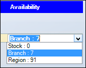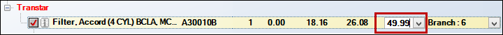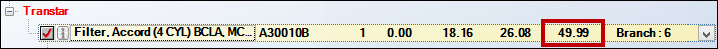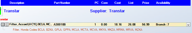 The location of the part and its available quantity in that location. The format is as follows: “Location [quantity]”. By default, the closest location with on-hand quantity appears on the line. There are three locations available. Click the down arrow to see the other locations. Stock – Your local inventory (part number/line code must match) Branch – The location closest to you. This is usually where you buy most of your parts. Region – The wider Transtar system. |