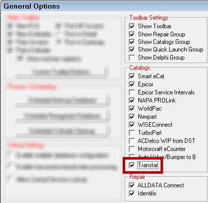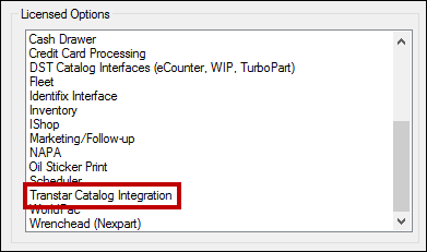 - On the window that opens, look for “Transtar Catalog Integration” in the Licensed Options box.
