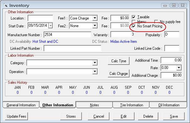 Parts with the No Smart Pricing box checked in inventory will not be updated using the Save & Update Inventory Pricing button.