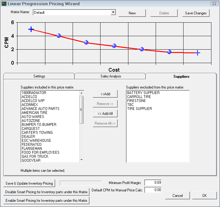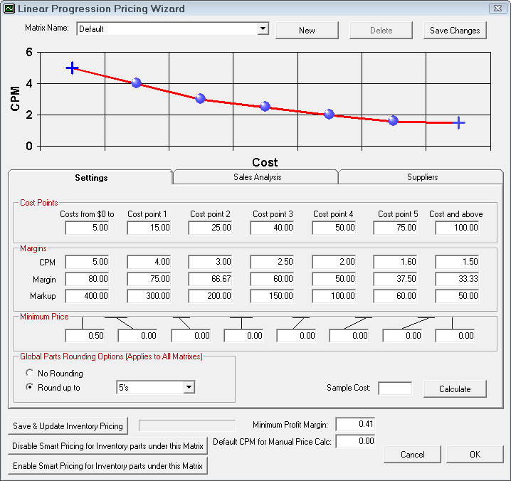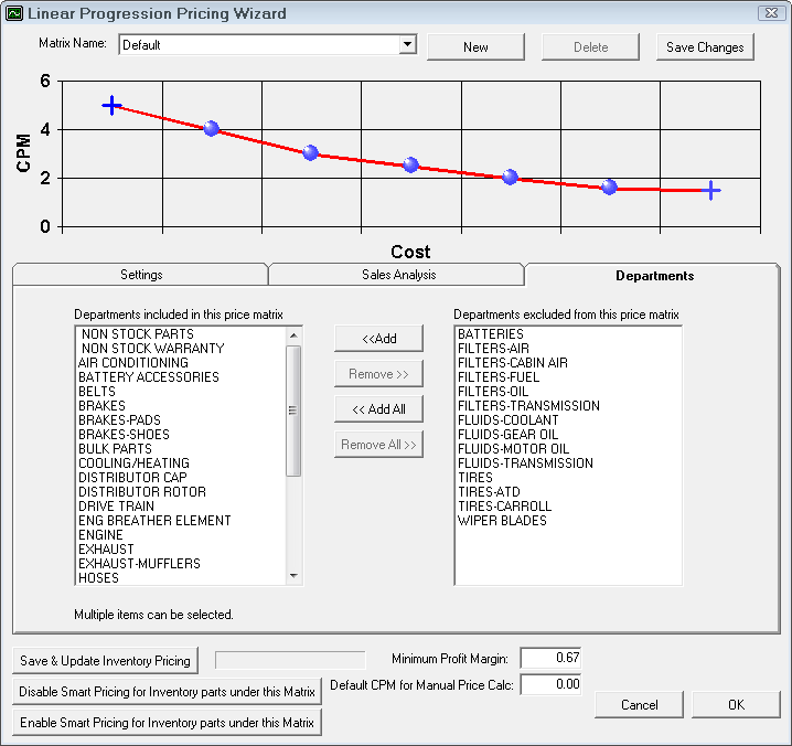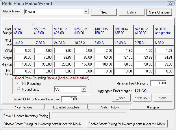 NOTE: This is the default CPM matrix. When parts departments are selected, the matrix for that department is used. To access the matrices for each department, select Configuration > Parts > Parts Departments.