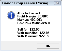 As part of the linear pricing, there is a minimum price that can be set for each cost range. If the calculated price is less than the minimum price, then that price is used.