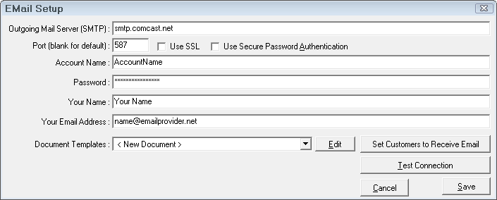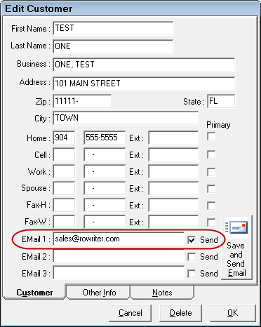NOTE: The system validates email addresses entered on the Edit Customer window to prevent junk email addresses being entered into the system.