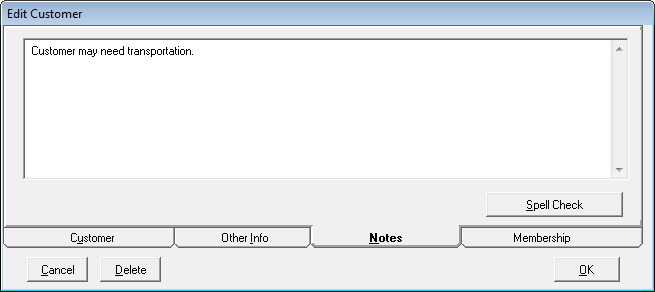 This section allows input of any information that might pertain to that customer. This information does not appear on the repair order.