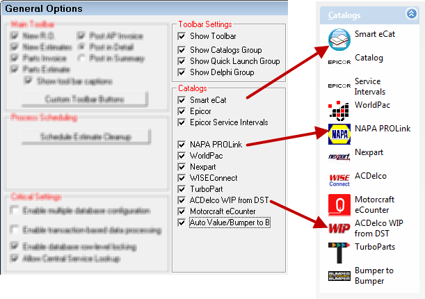 Display the Catalogs section in the Quick Launch and activate the Catalogs section on this window. In the Catalogs section, check the catalogs you want displayed. Check only the catalogs you have permission to access. |