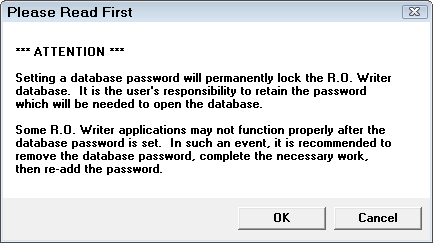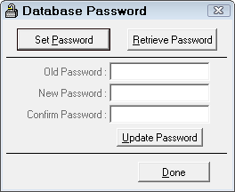 When the database password is set, every time you attempt to open the database in the database utility or Microsoft Access, you are prompted to enter this password but with a dash before each character.