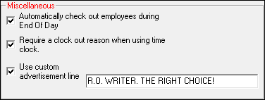 Prompts you to clock out all employees that are still clocked into the Employee Time Clock when End of Day Processingis launched. |