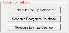 You can schedule database backups and reorganization to occur at regular intervals. Click either button and uncheck the Disable box.