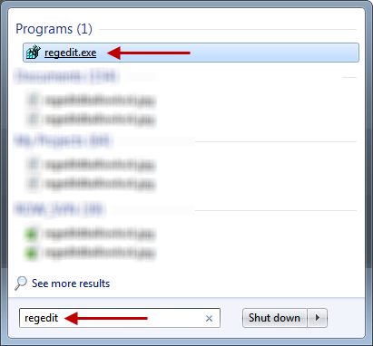 - Double-click on the RegEdit program at the top of the list. The Registry Editor opens.