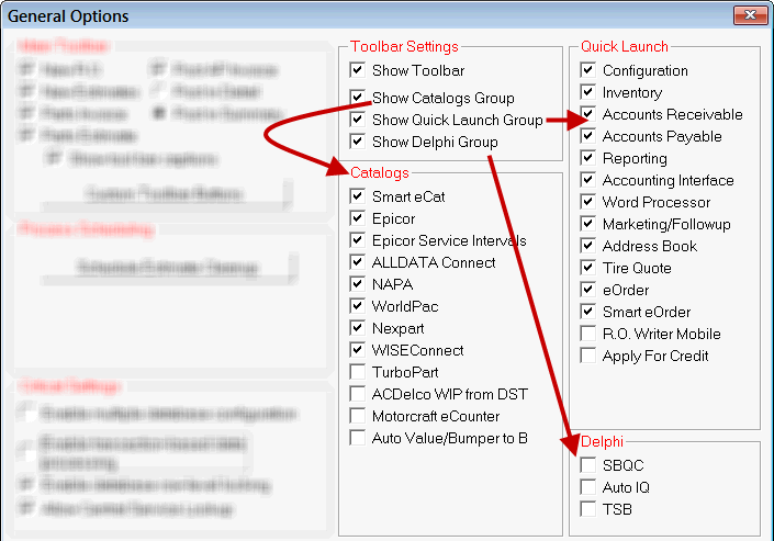 These settings determine what major sections display in the Quick Launch in the left panel. You need to check the group in this section to activate its corresponding section on the window. For example, check Show Quick Launch Group to activate the Quick Launch section. Then, you can check the boxes in the corresponding section.