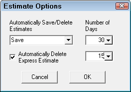 Express estimates are those that don't have customer information and are usually used to give estimates over the phone. Select this option to delete express estimates after a selected number of days. |
