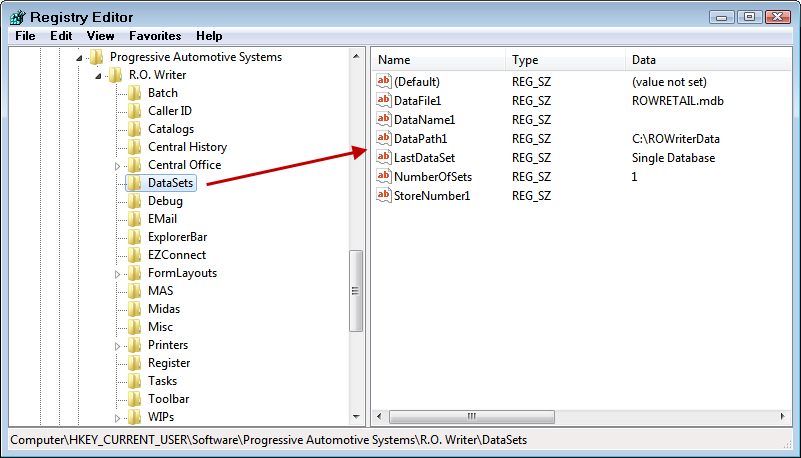 - Navigate to the R.O. Writer: click the plus sign next to HKEY_CURRENT_USER > Software > Progressive Automotive Systems > R.O. Writer.