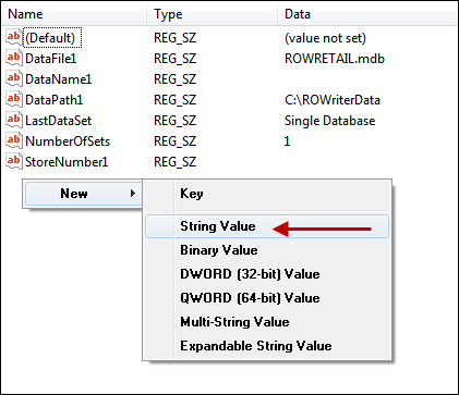 - Right click on a blank spot in the right pane of the window and select New and String Value.