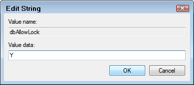 - Enter the name for the string value as "dbAllowLock" and press ENTER.
